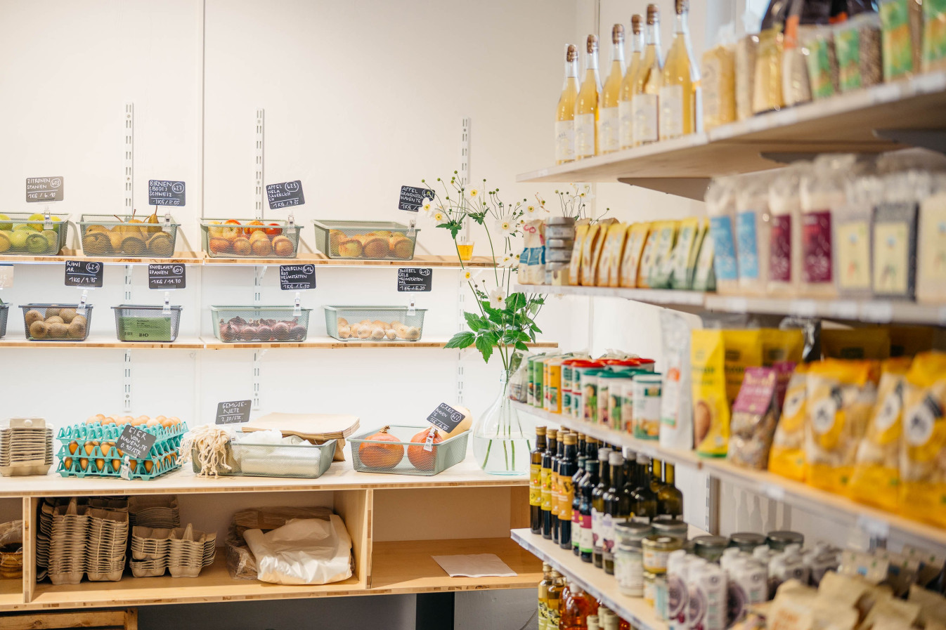 Flexibel und in Bio-Qualität einkaufen. Bei uns findest du alles für deinen täglichen Einkauf – auch frisches Brot und süsse Leckerbissen. Und in unserem Kafi kannst du täglich Feines essen und Kafi und Kuchen geniessen.